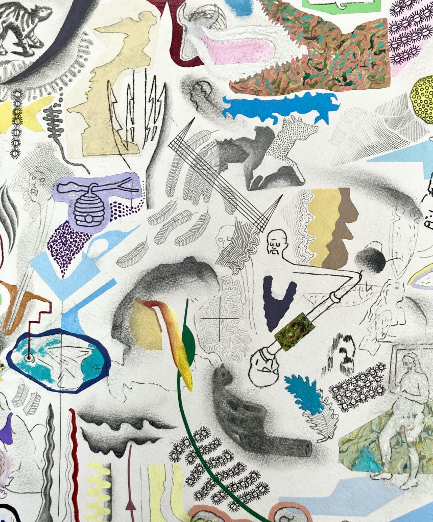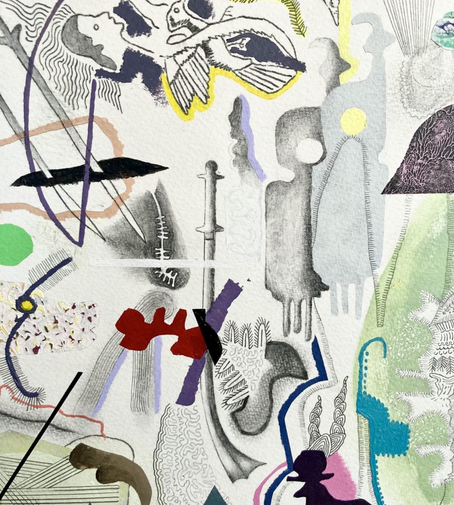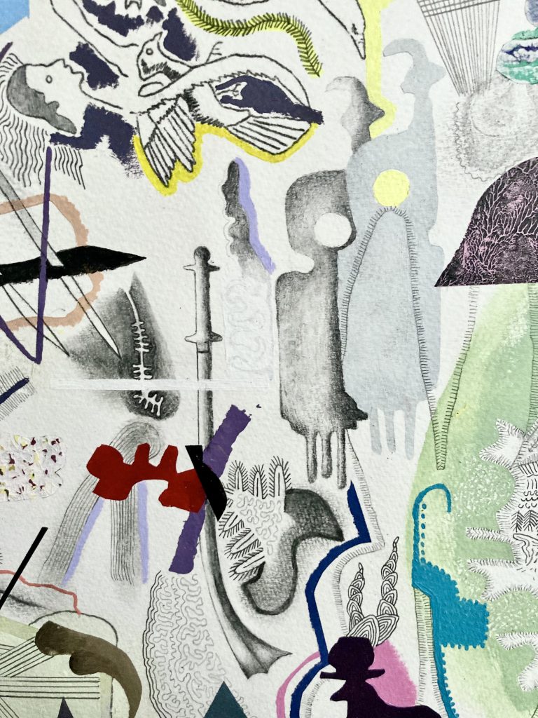 For Kudra 23. DETAIL. Acrylic, Pencil, Oil Pastel, Ink on Paper. 2026.