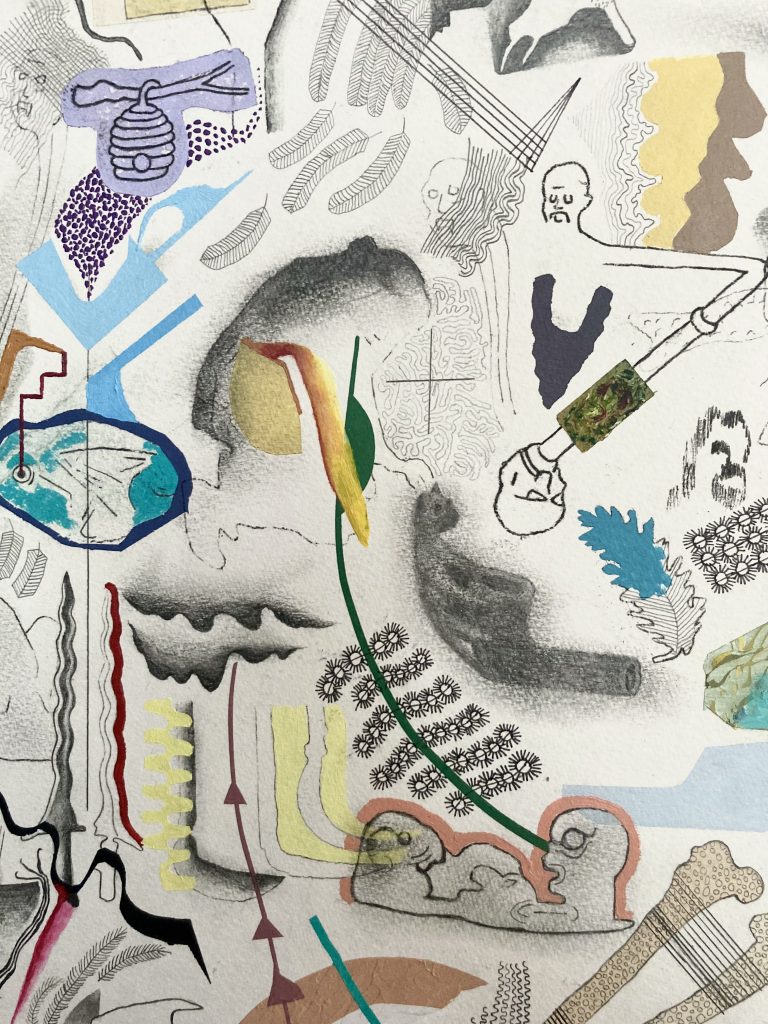 A Public Function Of The Apocalypse. DETAIL. Acrylic, Oil Pastel, Ink on Paper. 2024.